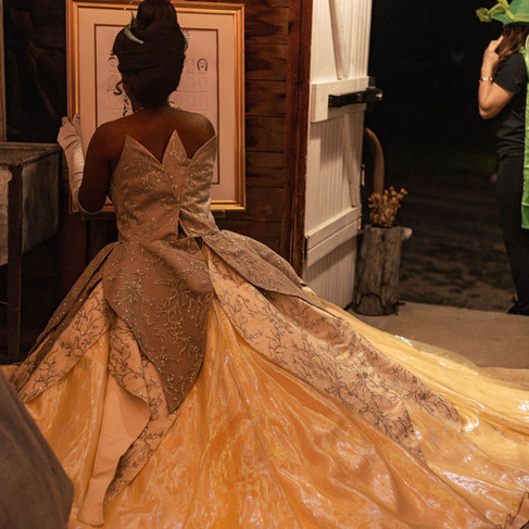 How can I even begin to describe how truly magical this special Disney Experience was? The weather was picture perfect, the sun shining gently through the clouds as if even the sky knew something special was waiting. The girls arrived to find a scene straight out of a fairytale! The air was filled with pure excitement and a touch of pixie dust. All three girls had their hair and makeup done and slipped into the most stunning custom dresses, designed by the girls themselves! We secretly got our hands on their beautiful dream dresses that they drew! The look on their faces as they saw their visions come to life was priceless. The girls’ smiles stretched from ear to ear, the pure joy, the pure magic. Not one thing went wrong, it was as if the day itself was magically enchanted!